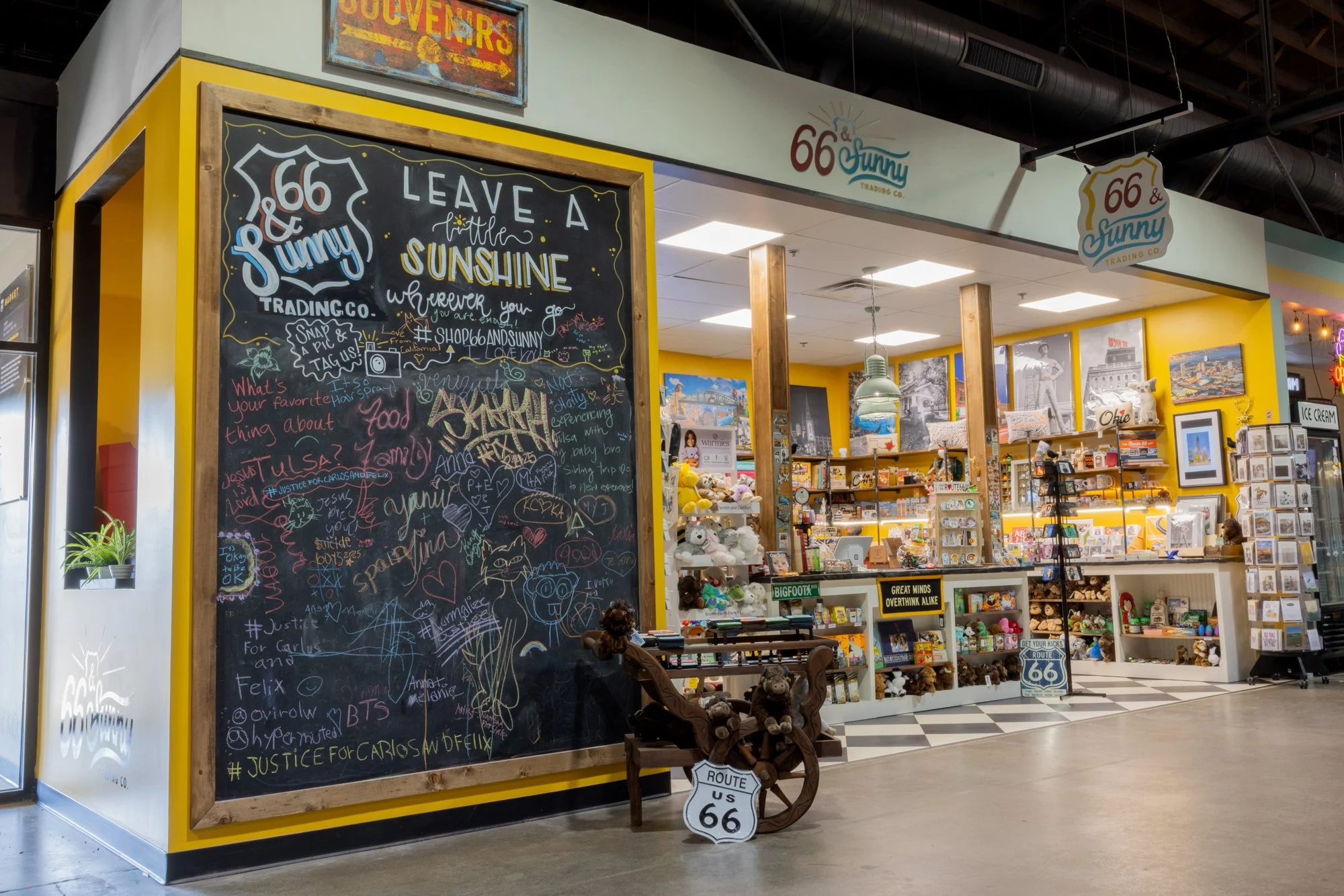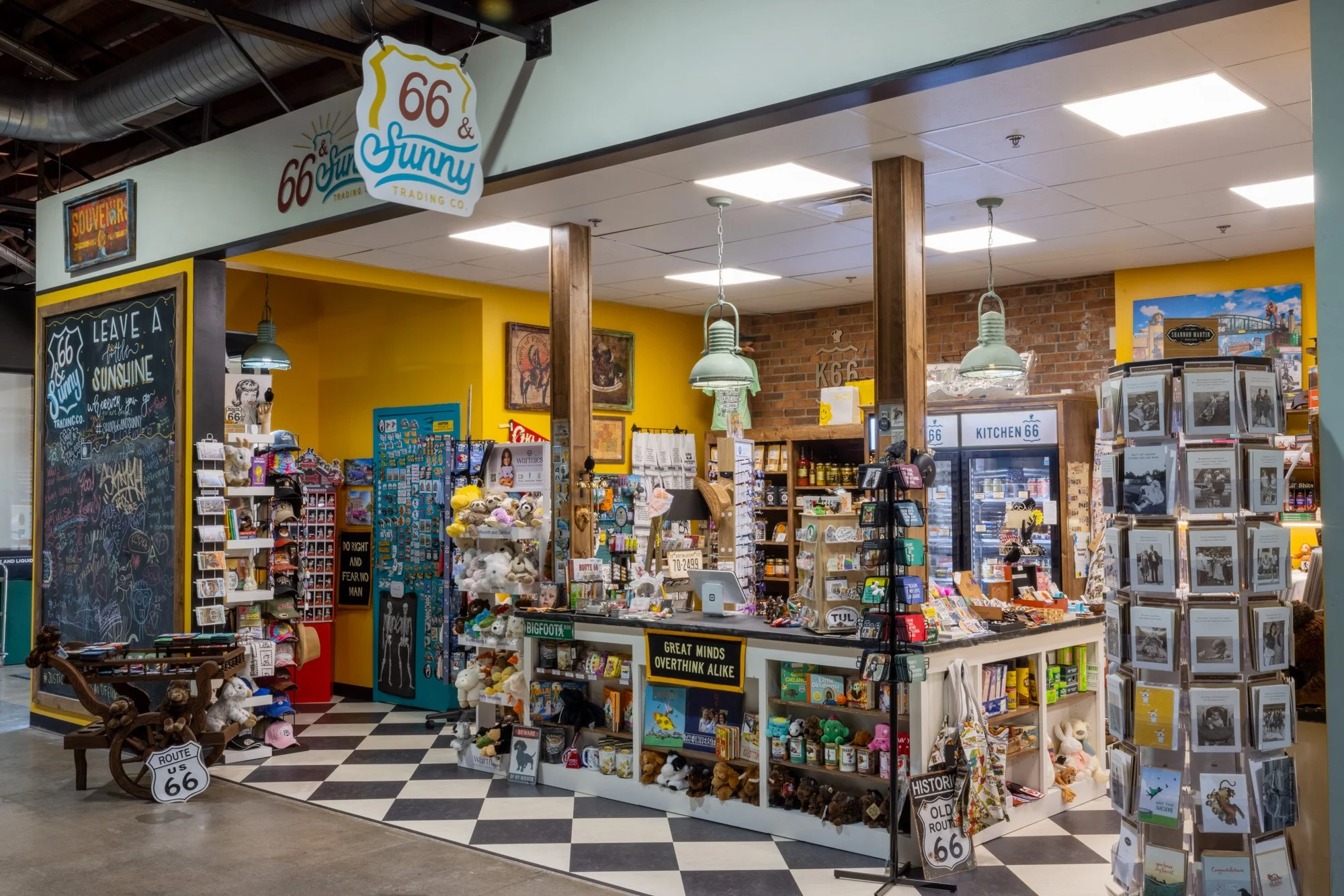 Tucked just off Route 66 in Tulsa’s Mother Road Market, 66 & Sunny Trading Co. is filled with fun and quirky nostalgic treasures, Oklahoma-made charm, and curious gifts chosen with heart.